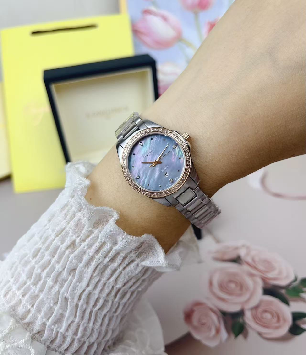 Powered by an imported quartz movement, it features scratch-resistant double-curved sapphire crystal glass and a 316 stainless steel case, with a lustrous mother-of-pearl dial that shimmers brilliantly. The stainless steel bracelet is paired with an original triple-folding clasp. Exquisitely Comfortable 💗 Versatile & Trendy 💖