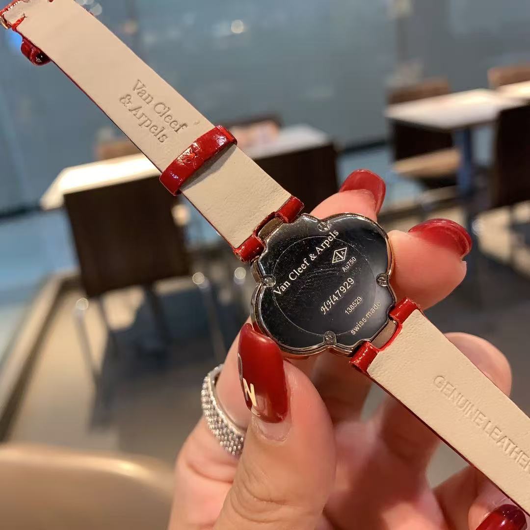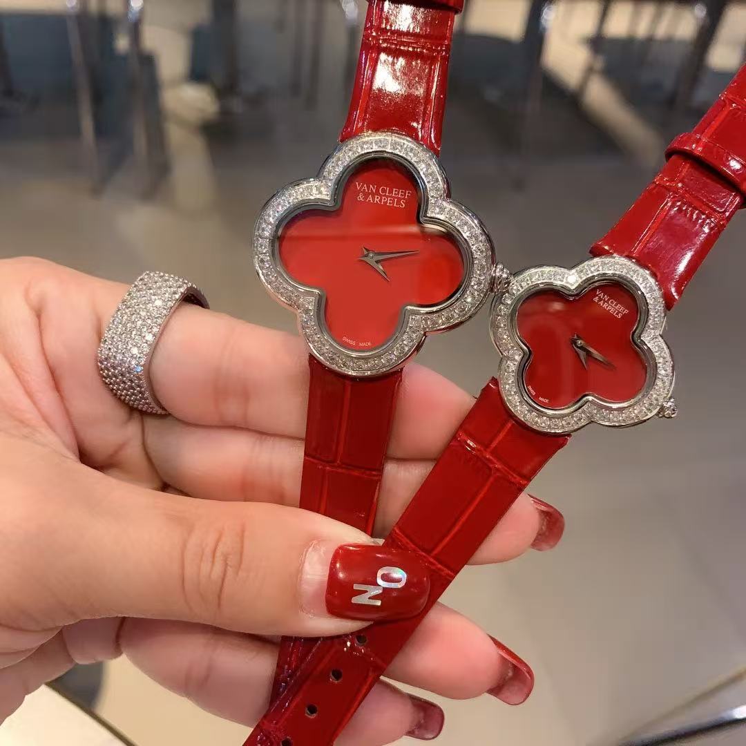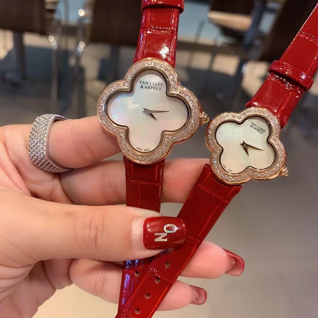 With a black mother-of-pearl dial, inlaid with Swarovski crystals and genuine diamonds, paired with imported top-grain leather straps and original quartz movements.