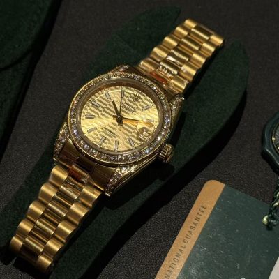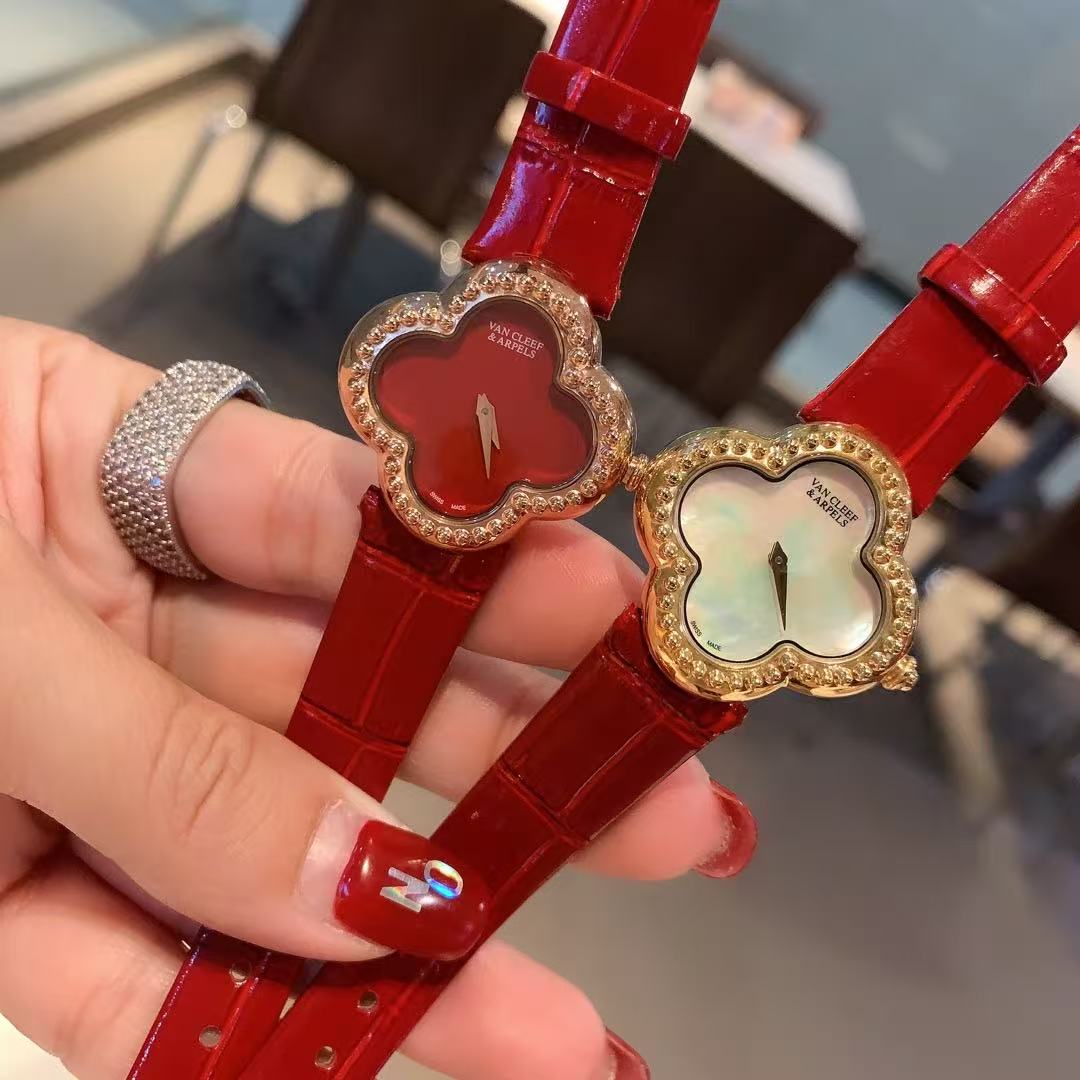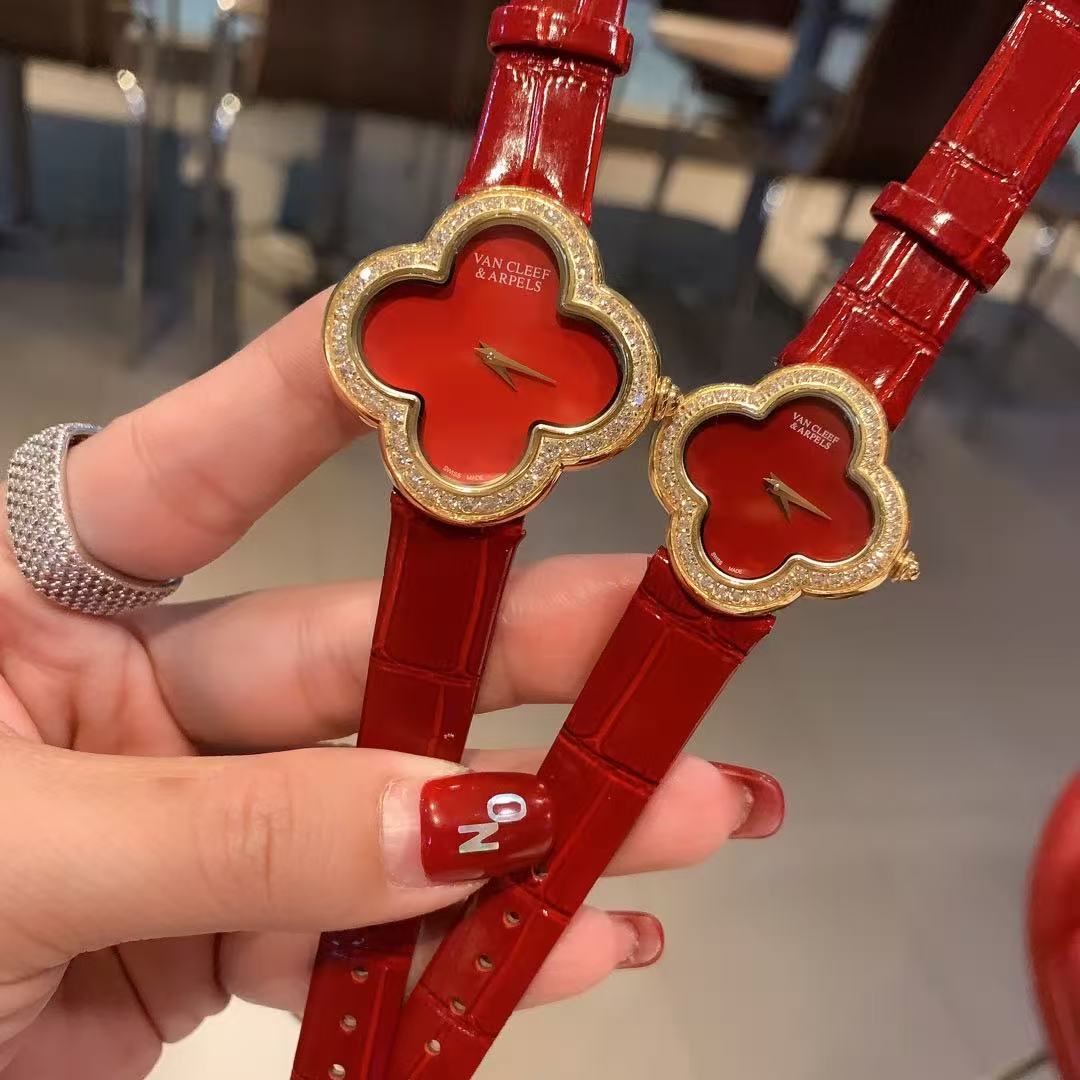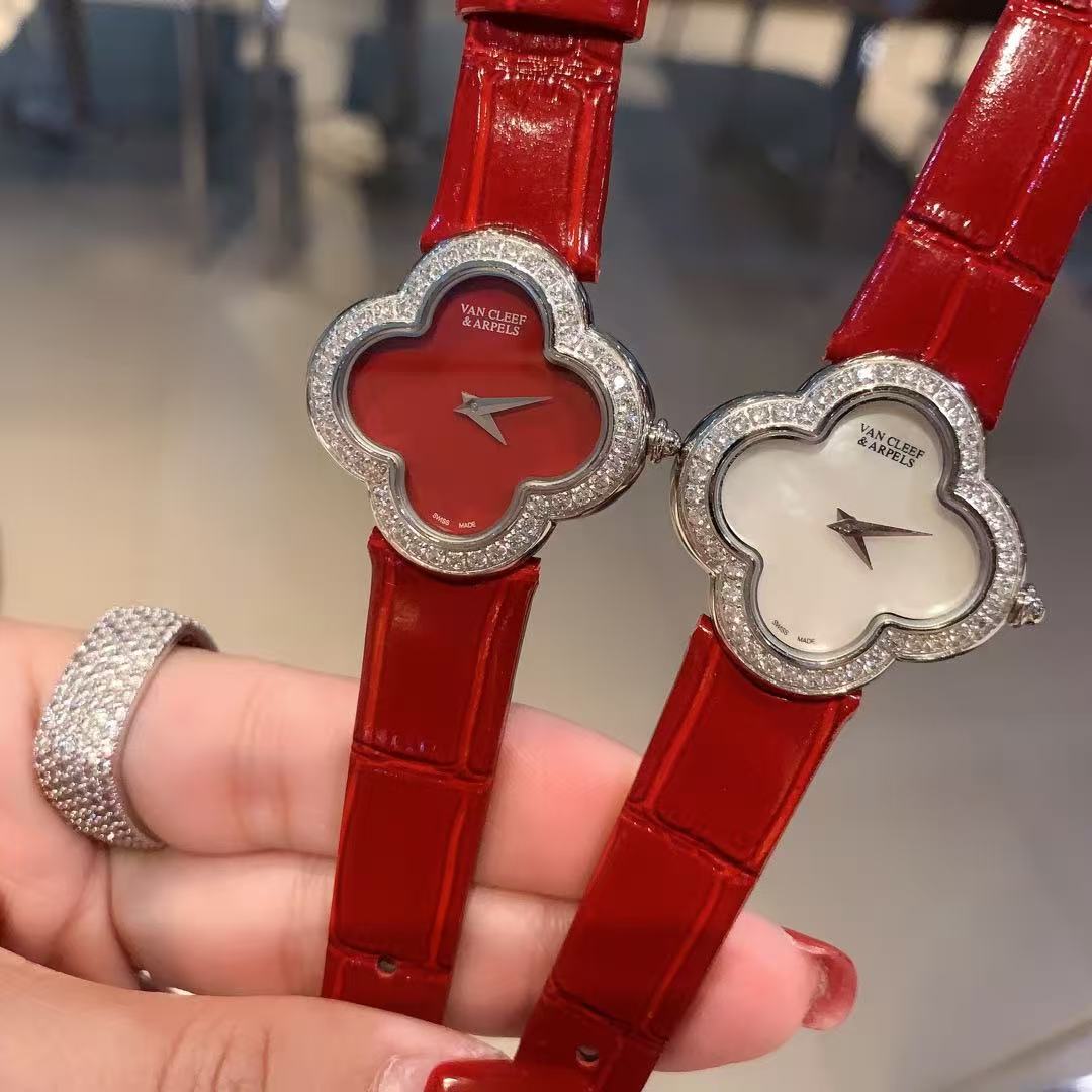 With a black mother-of-pearl dial, inlaid with Swarovski crystals and genuine diamonds, paired with imported top-grain leather straps and original quartz movements.